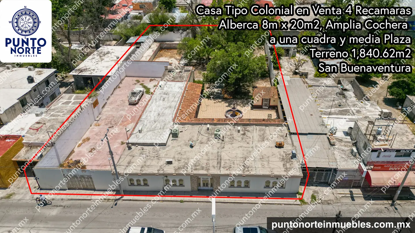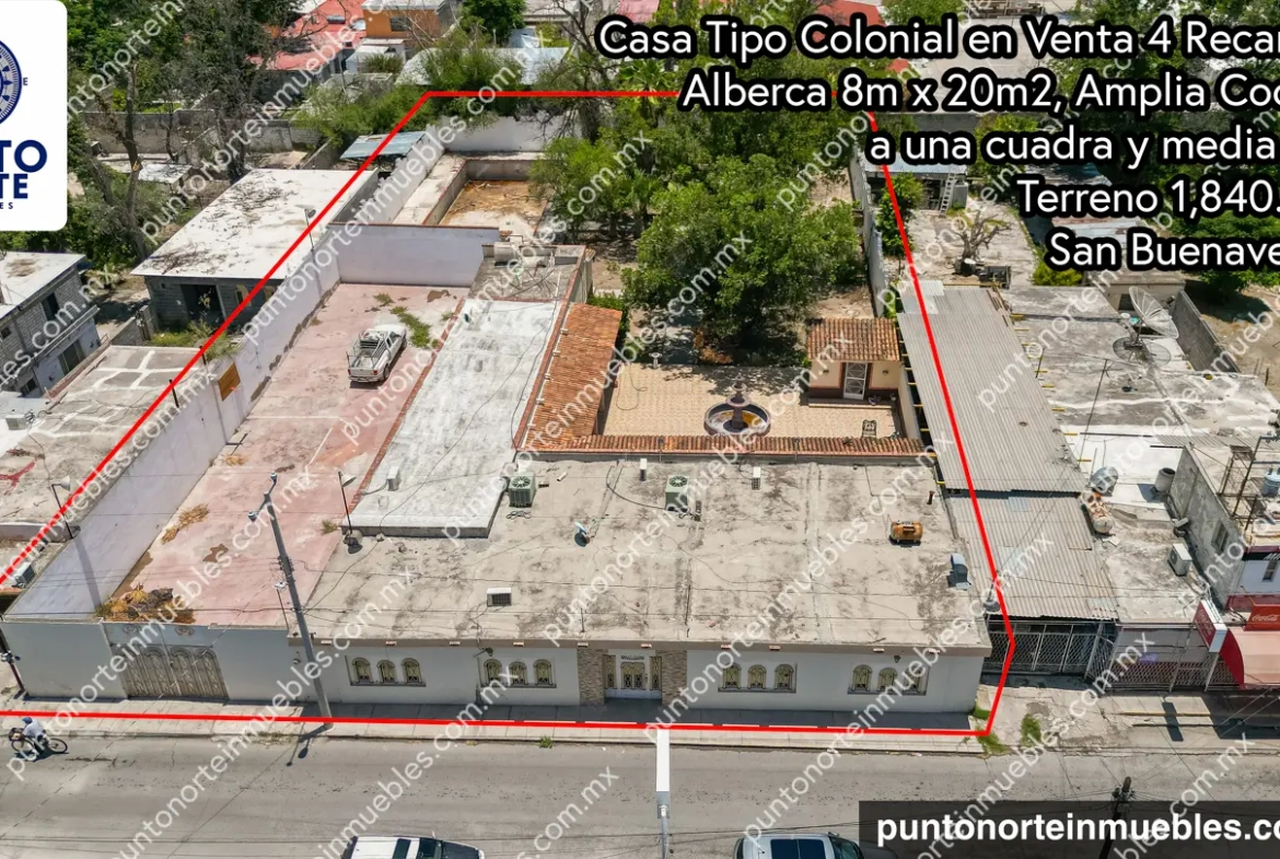 En Venta Casa Tipo Colonial con 1,840m2 de Terreno, 4 Recamaras, Alberca de 8m x 20m, Z.C. San Buena