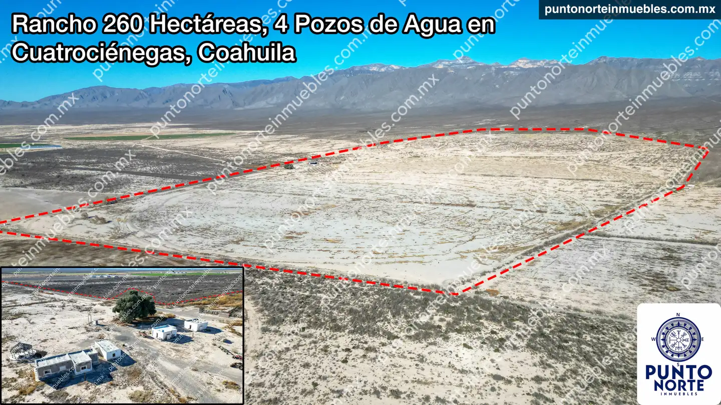 🎯 En Venta Rancho Agricola 260 Hectáreas en Cuatrociénegas, Coahuila, con 4 Pozos de Agua y Subestación Eléctrica