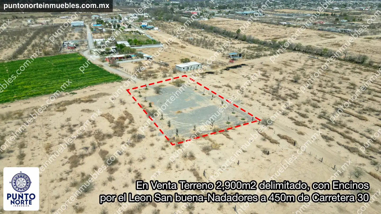 🎯 En Venta Terreno 2,900m2 delimitado, con Encinos, por el Leon San buena-Nadadores a 450m de Carretera 30
