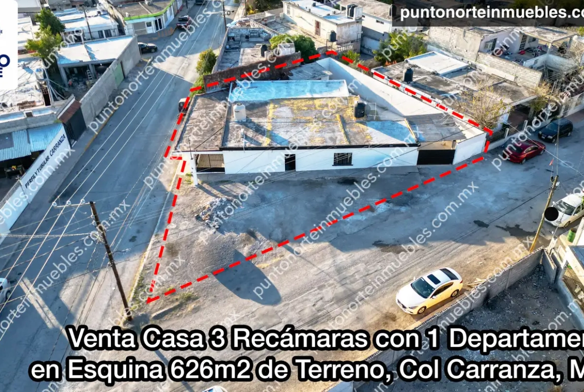 🔥 En Venta de Casa 3 Recámaras con 1 Departamento, en Esquina 626m2 de Terreno, Col Carranza