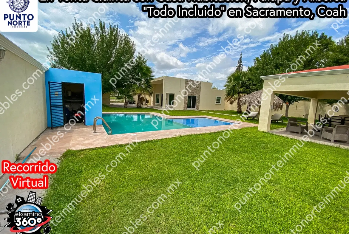 🚀 En Venta Quinta con Casa Habitación, Palapa y Alberca “Todo Incluido”, a 50 metros de Carr 30 en Sacramento, Coah