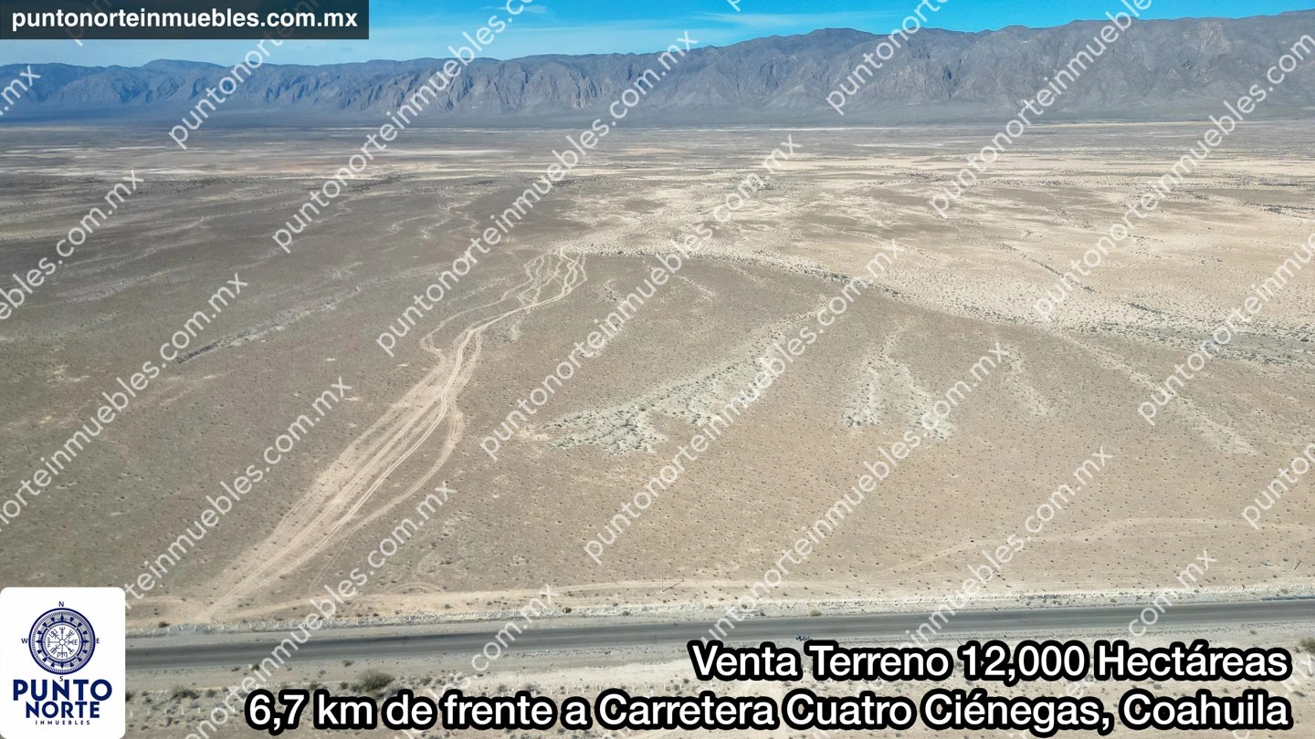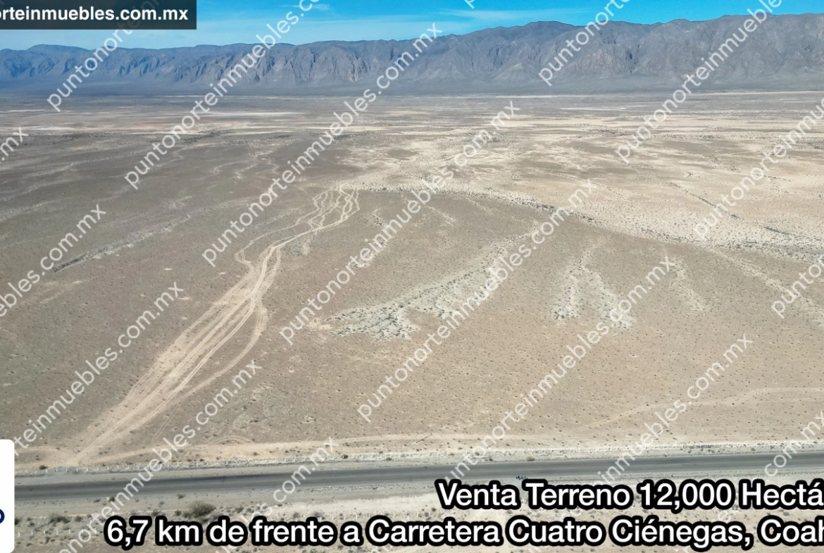 🎯 En Venta Terreno 12,000 Hectáreas 6,7 kilómetros de frente a Carretera a San Pedro, en Cuatro Ciénegas, Coahuila