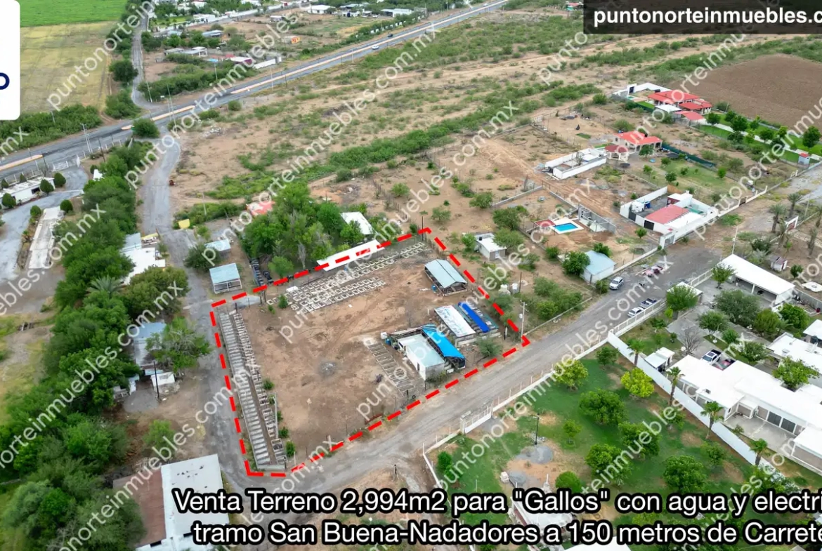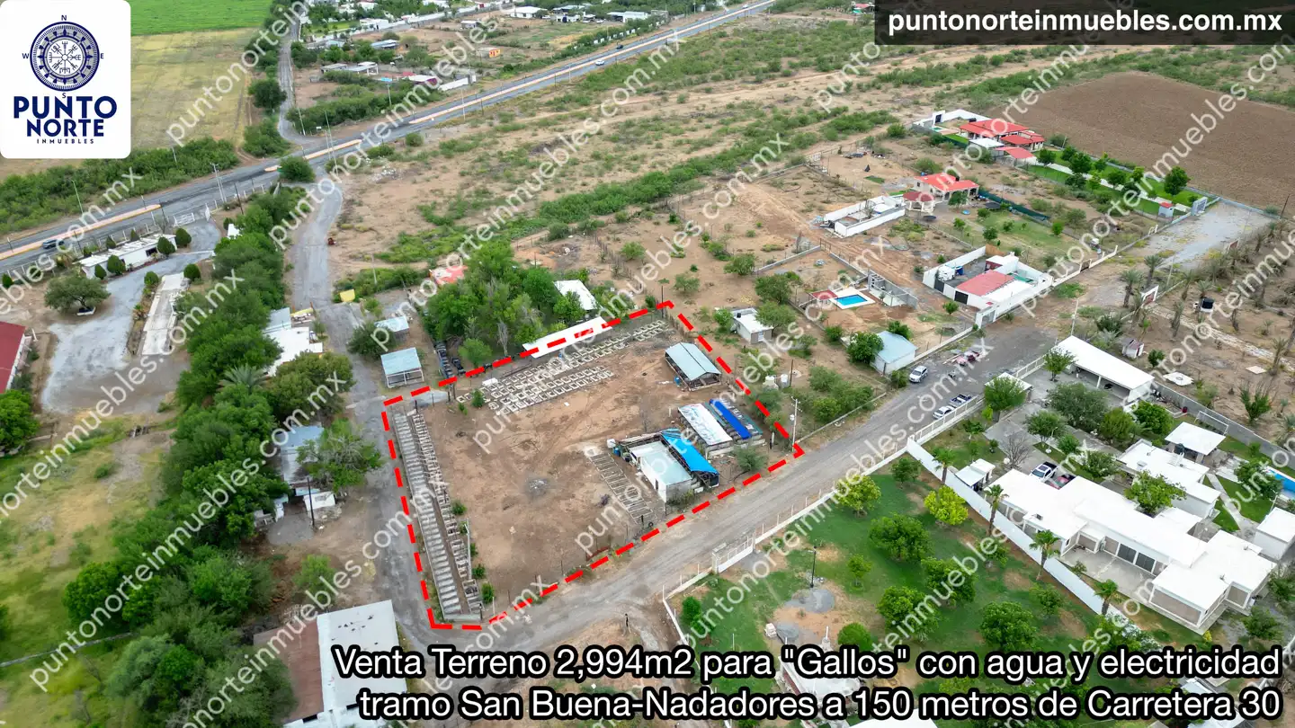 🎯 En Venta Terreno 2,994m2 para “Gallos” con agua y electricidad tramo San Buena-Nadadores a 150 metros de Carretera 30