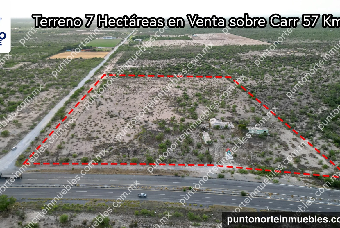 🎯 Descripción: En Venta Terreno 7 Hectáreas con frente a Carretera 57 km 18 Monclova, con agua y electricidad