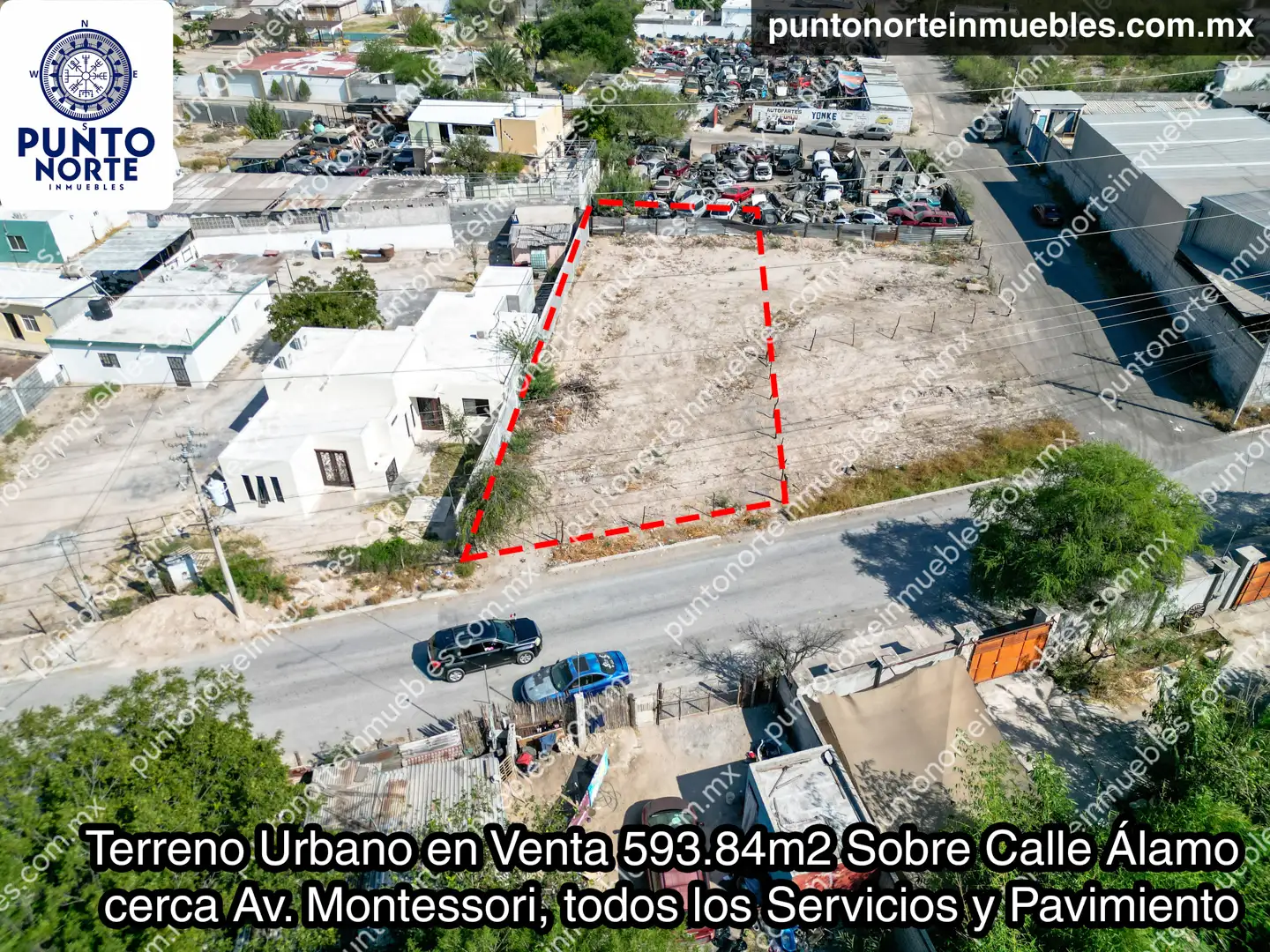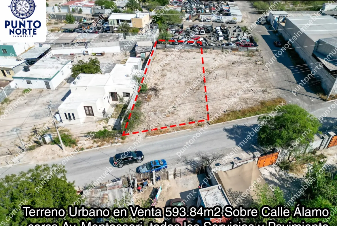 🔥 En Venta Terreno Urbano 593.84m2 Sobre Calle Álamo cerca Av. Montessori, todos los Servicios y Pavimiento
